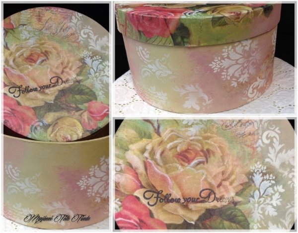 Ezen a dobozon festési és ragasztási technikákat mutattak be, és tényleg számomra új megközelítésben, de lássuk a dobozt…