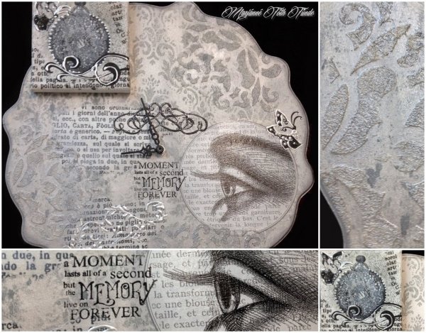 Na most jött csak a munka java, egy óralapot díszítettünk nagyon sok technikával, bele sem fogok a felsorolásába, mert valamit biztos kihagynék.